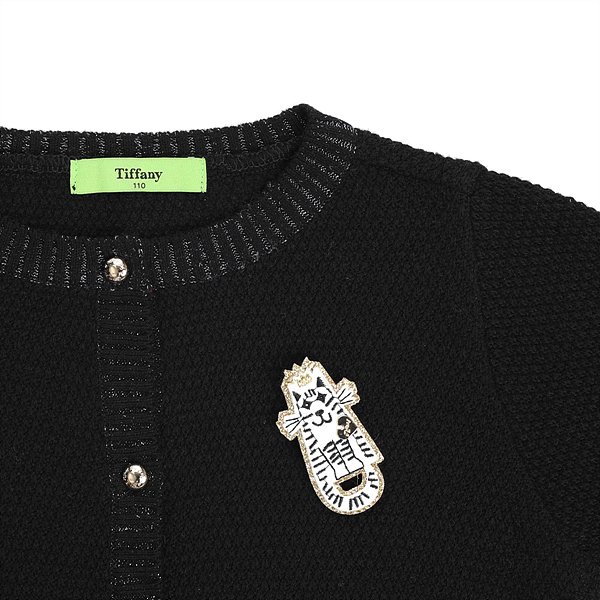 상세설명-블랙컬러에 은색펄감이 있어 단정하면서도 화려한 분위기로 연출되는 가디건입니다.