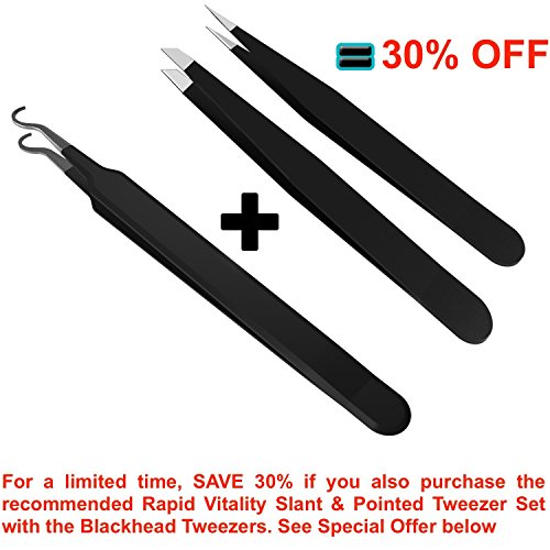 Blackhead Tweezer - Professional Curved Steel Tip Surgical Comedone & Splinter Extractor By Rapid Vitality. Ideal Blemish & Acne Remover Tool Means...