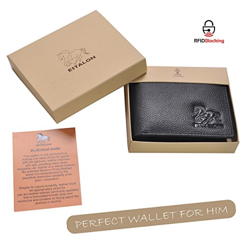 -. Title : Estalon Hand Made Men's Bifold Rfid Blocking Leather Protected Security Multi Card Wallet