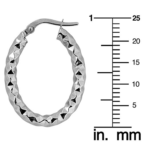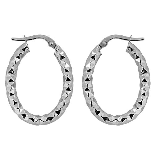 These gold earrings are crafted of diamond-cut finished 14k gold and showcase an oval hoop style. Exquisitely made in Italy, this pair of gold oval hoop earrings offers elegance, style, and charm. We offer this pair of stunning gold hoop earrings in 14k yellow gold hoop earrings or 14k white gold hoop earrings. Choose one or both and let these 14k gold hoop earrings highlight your every look.