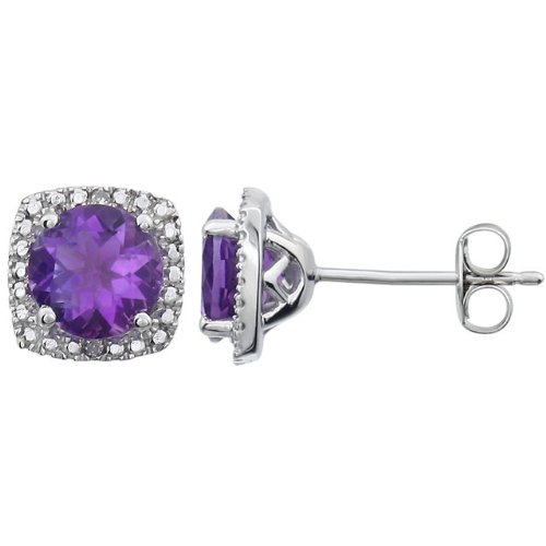 - Title : CleverEve 2014 Designer Series One Pair Halo-Styled Sterling Silver .015 ct tw Diamond Button Earrings w/ 6mm Synthesized Center in Your Choice of Sapphire, Amethyst, Aquamarine, Citrine, Emerald, Pearl, Garnet, Opal, Peridot, Ruby, Blue Topaz, or White Sapphire