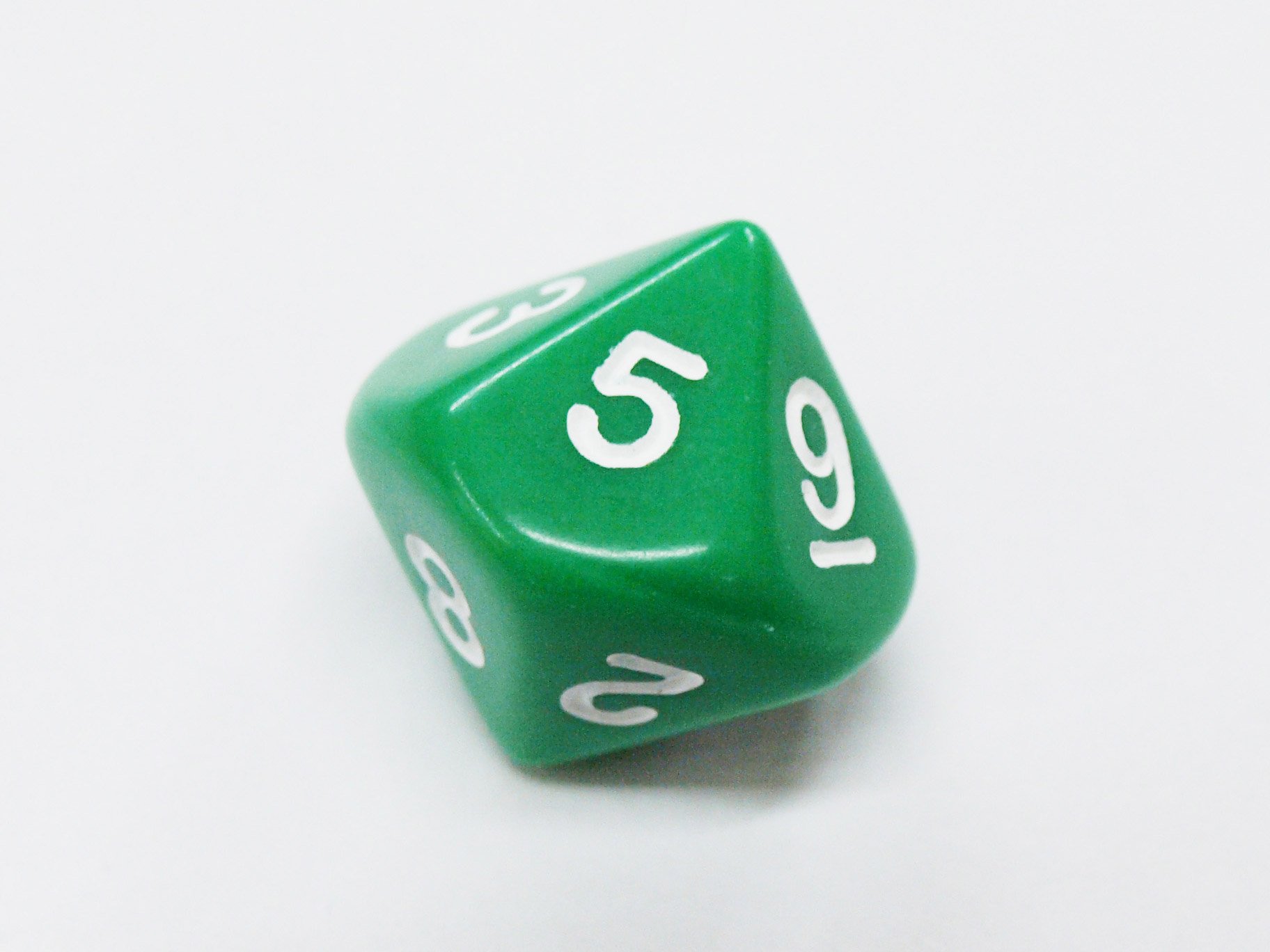 Set of 2 D10 10-Sided 20mm Opaque RPG Dice - Green with White Numbers