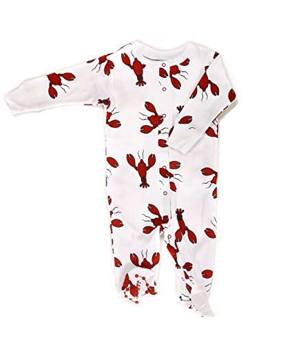 Big, bold, red lobsters splash across thee pure white organic cotton footies