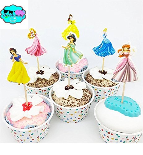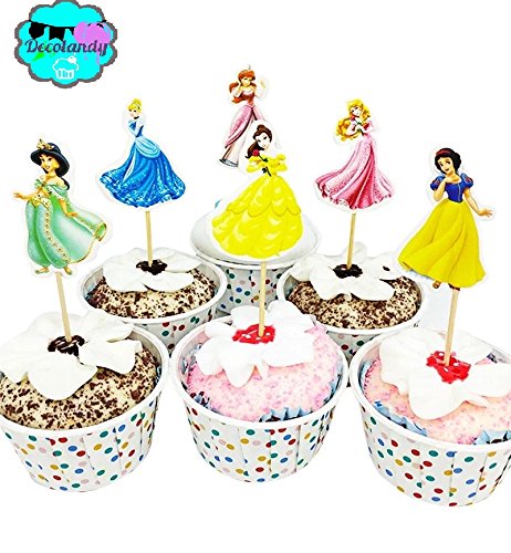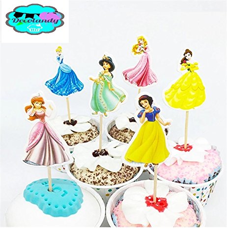 Decolandy 48 piece Princess Cupcake toppers with picks ,Princess Cupcake toppers, double sided