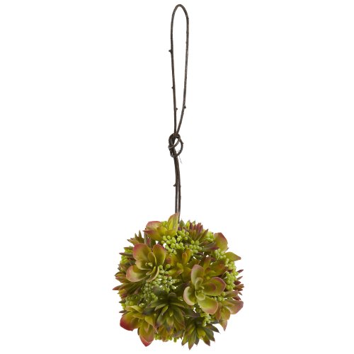 Nearly Natural 4970-S3 9-Inch Mixed Succulent Wreath and Set of 2 Hanging Spheres, Green