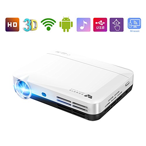 WOWOTO H8 Video Projector,3D DLP Projector 1280x800 Support 1080P Full HD , Android 4.4 OS , with Keystone, HDMI, WIFI & Bluetooth