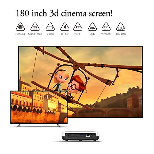 H8 Smart Projector equipped with Android 4.4 operating system and Quad-core processor allowed you download thousands APPS (Video, Game, Excel ,PowerPoint and so on). RAM/ROM:1G/8GB+Micro SD Slot (Support upto 32G Micro SD Card)