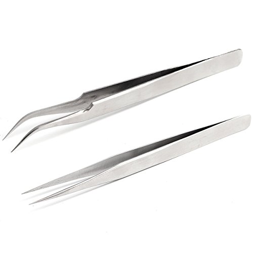 -. Feature : Material: Surgical Grade - Stainless steel; Color: Silver; Size: Straight: 4.92 inch /12.5 cm; Curved: 5.31 inch /13.5 cm. / The straight tip are specifically designed for the easy pick up of multiple hairs off the tray. The angle tip is perfect for selecting an individual lash or to separate a client's natural lashes in order to isolate one natural lash. / Professional making: Perfect for selecting, isolating and picking up eyelashes. The fine pointed tips makes it easier to maneuver into any direction or angle. Light weight so does not cause hand fatigue. / Precise: The edge of every pointed tweezer is aligned to ensure a great tweeze every time. / Occasions A lash artist / beginner must have. Durable enough for beauty salon or home use. Perfect gift for your loved ones a beautiful pair of modern, sleek tweezers.