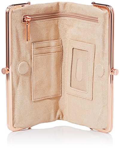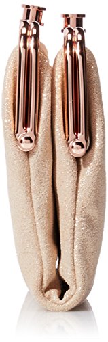 -. Feature : Long wallet featuring dual pouches with polished hardware frames and logo-engraved clasps