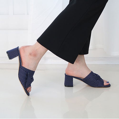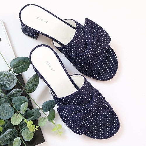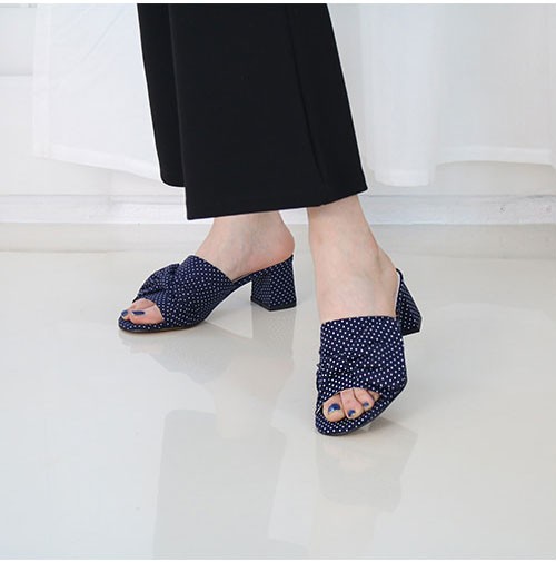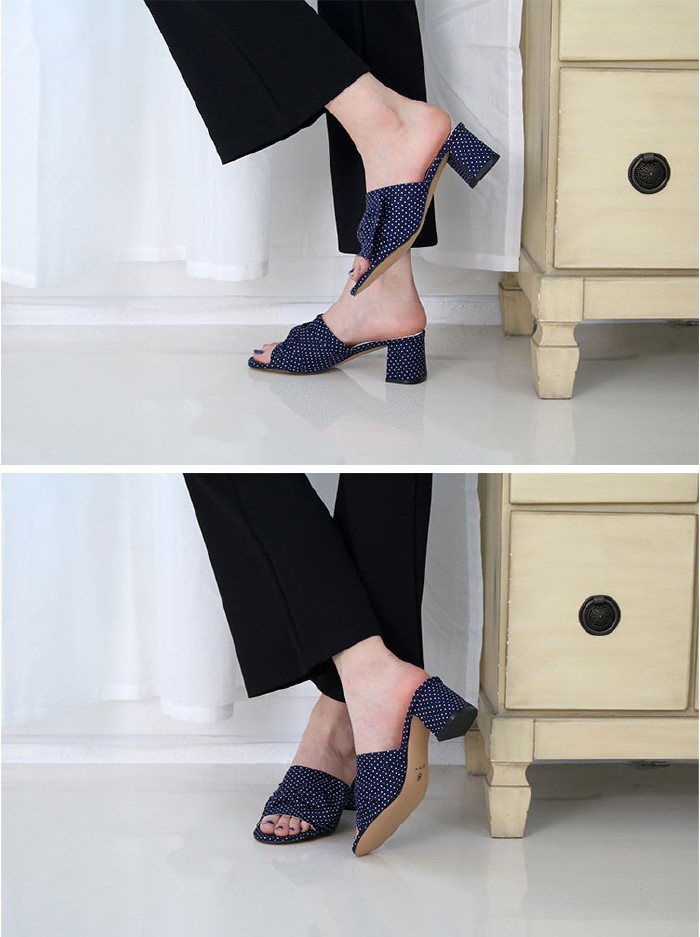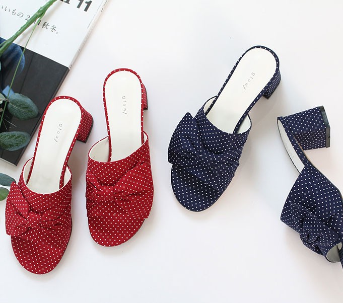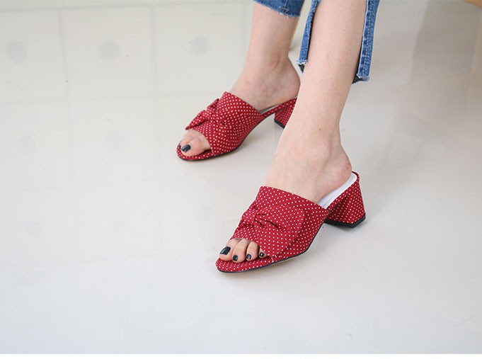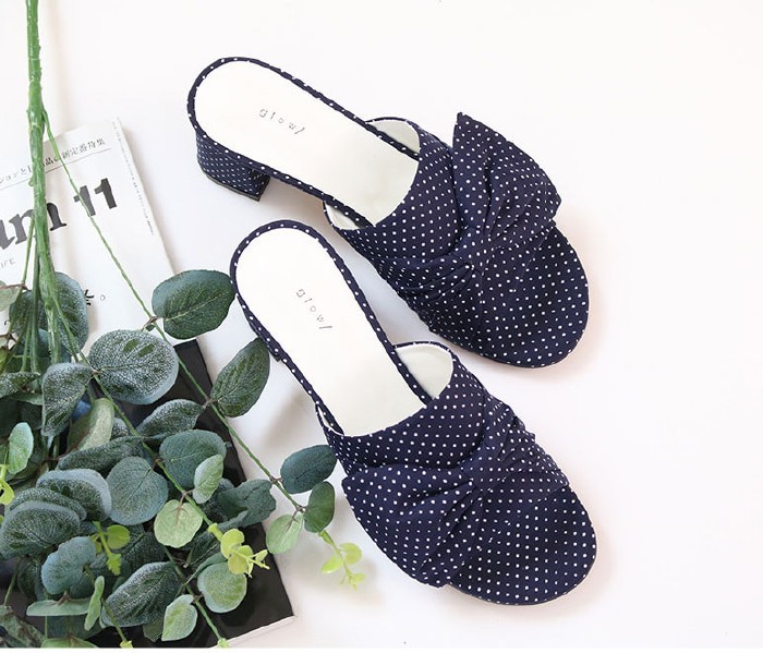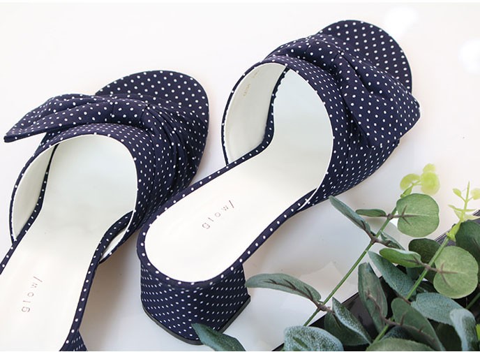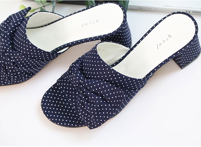 商品名:サンダル レディース ミュール ドット 太ヒール チャンキーヒール 2018 春 ファッション 靴 婦人靴