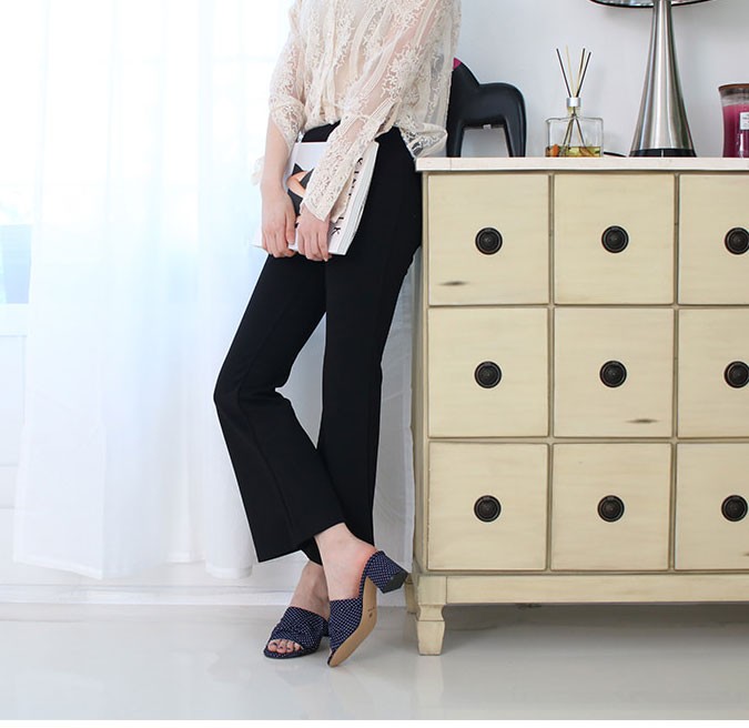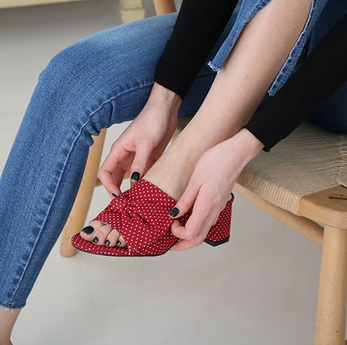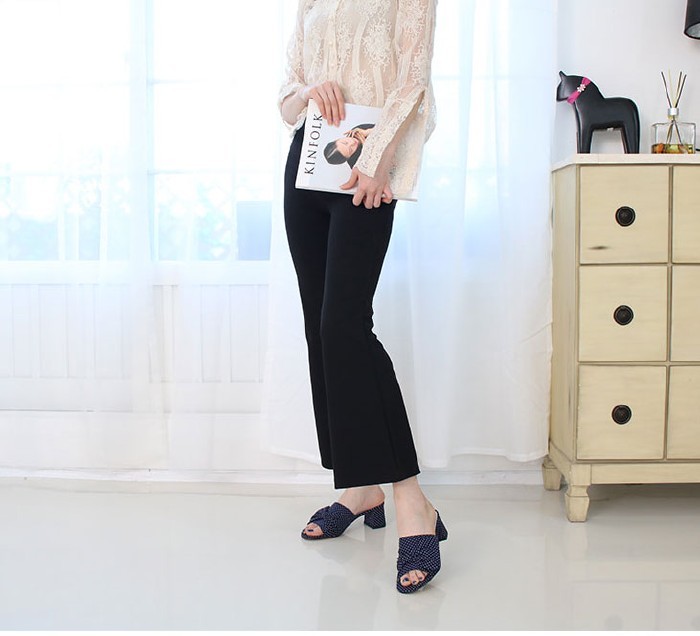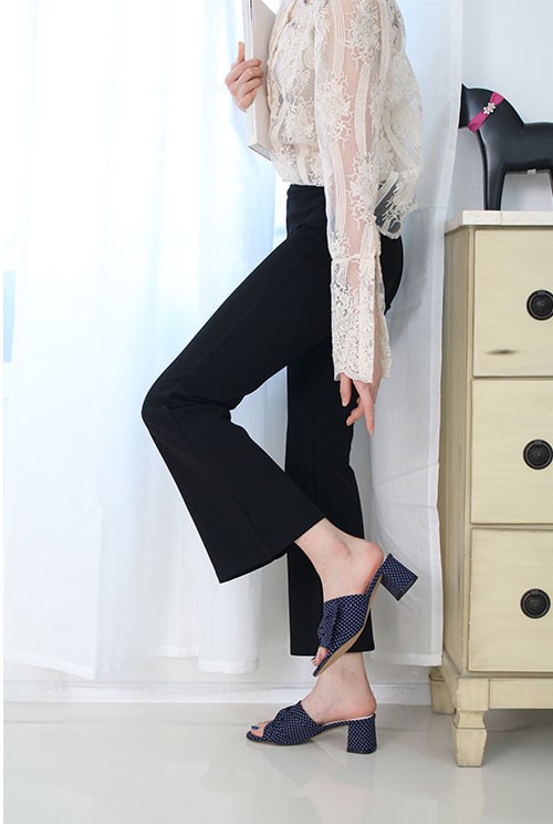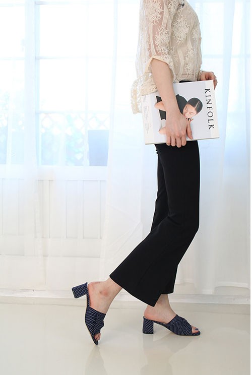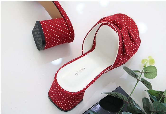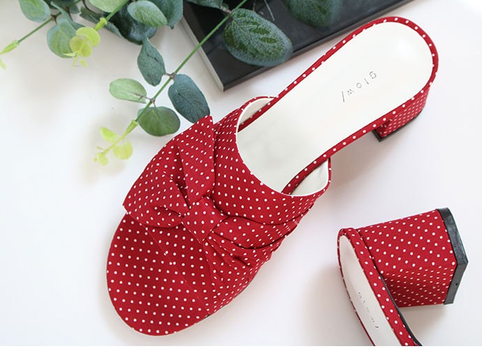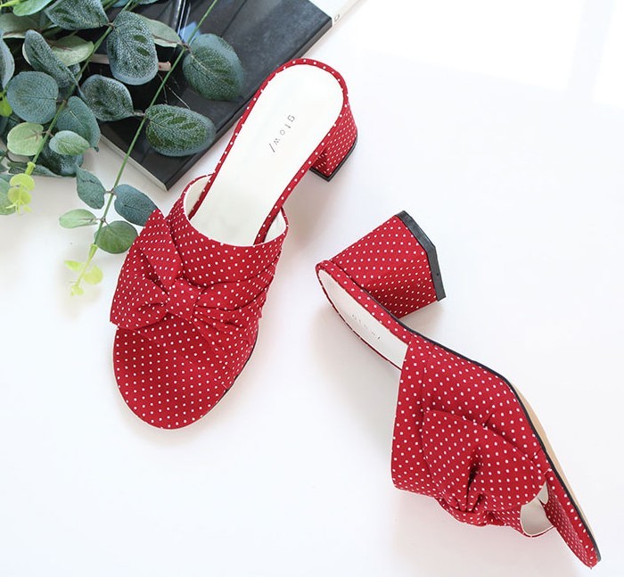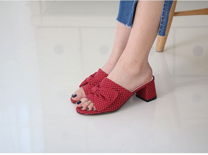 商品名:サンダル レディース ミュール ドット 太ヒール チャンキーヒール 2018 春 ファッション 靴 婦人靴