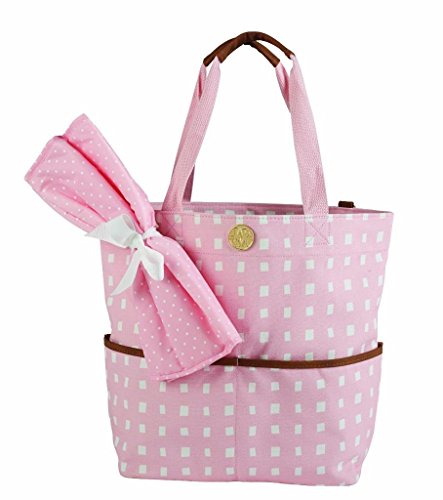 2-piece set. Treated cotton canvas, on-the-go diaper tote features 4 roomy exterior pockets, interior zip-secure pocket, over-the-shoulder handles and key-finder clip. Comes with coordinating, wipe-clean nylon changing pad. Canvas is treated with stain-resistant, water-resistant.Feature