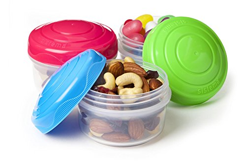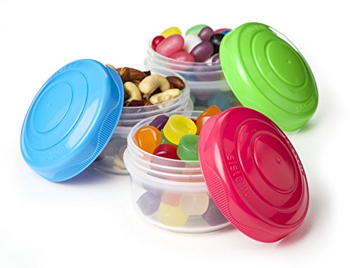 Sistema To Go Collection Mini Bites Food Storage Containers, 4.3 Ounce, Assorted Colors, Set of 3,