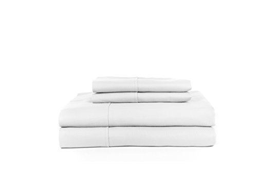 PERTHSHIRE PLATINUM COLLECTION T720 Jacquard Herringbone Sheet Set, Queen, White