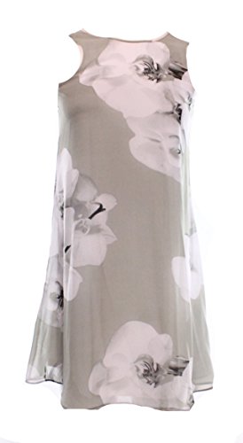Calvin Klein Women's Grey Floral Print Chiffon Shift Dress @105 Gray 2