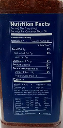 -. Feature : Pack of three, 20-ounce plastic canisters (total of 60-ounces) / Uses only the highest quality sun-ripened pre-frost chili peppers / Blended with cumin, oregano, and garlic