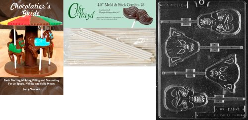 Cybrtrayd 'Assorted Ghouls Lolly' Halloween Chocolate Candy Mold with 25 4.5-Inch Lollipop Sticks and Chocolatier's Guide