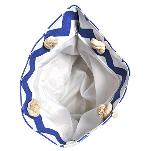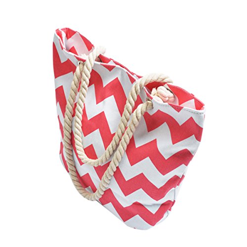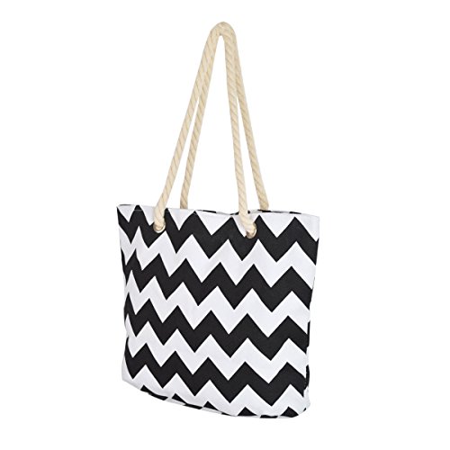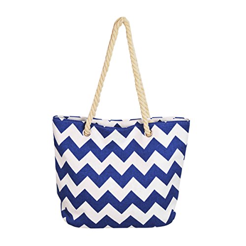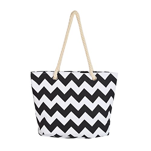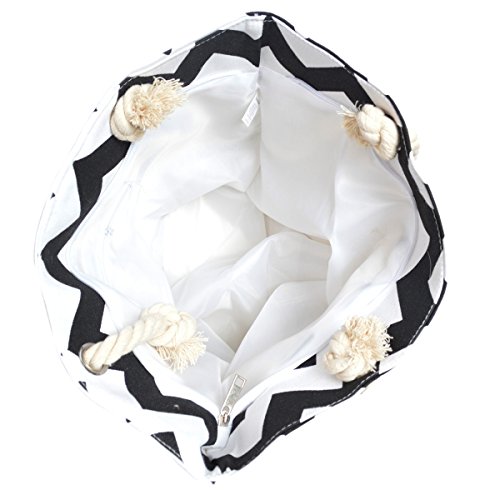 -. Feature : High quality chevron patterned canvas bag / Size: 18" (L) x 13" (H) x6" (W) / Two sturdy double straps with 11" drop / Fabric lining, top zip closure, interior wall zip pockets. / Casual luxury, lightweight, roomy & functional for all daily essentials