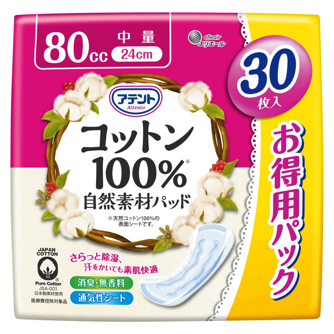 A sucking pad for daytime napkin size for those who have increased the number of symptoms at the moment when power comes in.