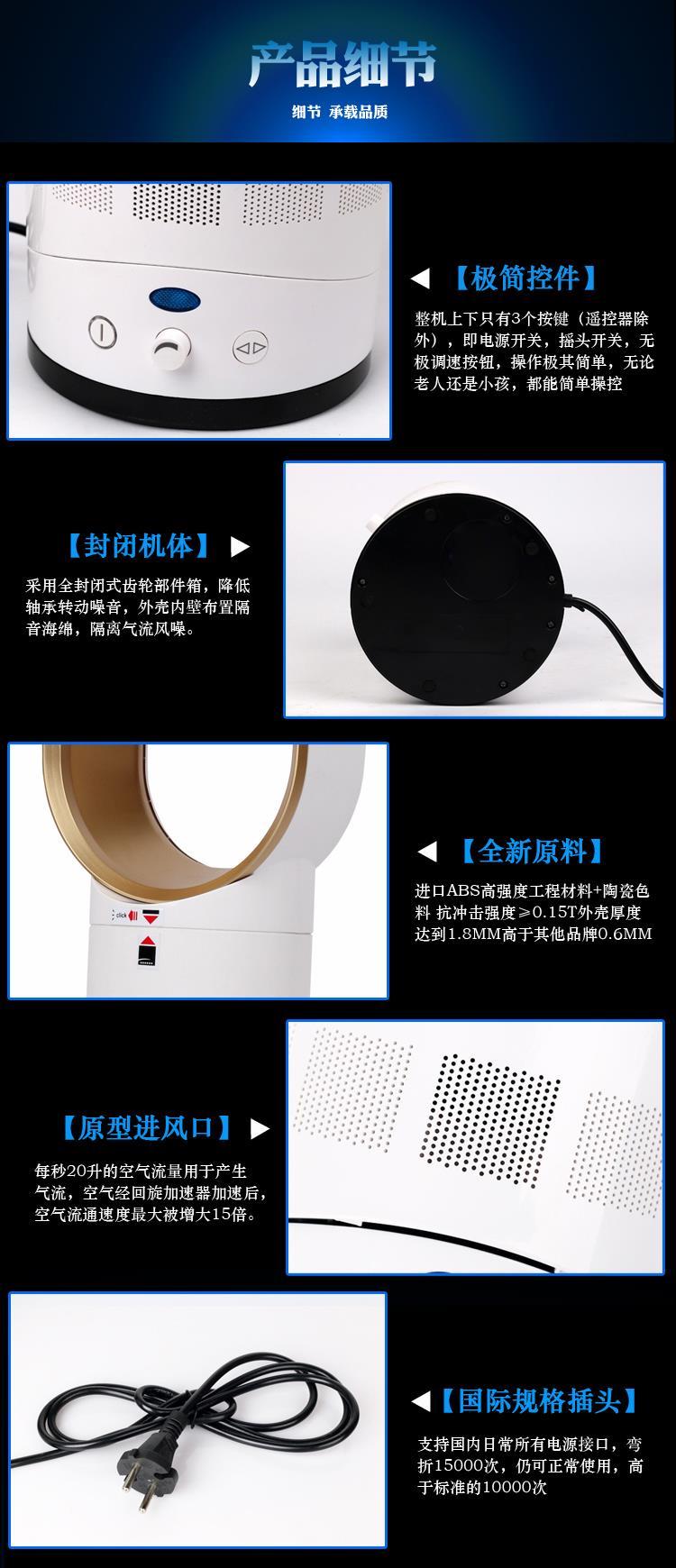 3、健康:无风叶风扇通过空气倍增技术优化处理,吹向人体身前是100%的自然风