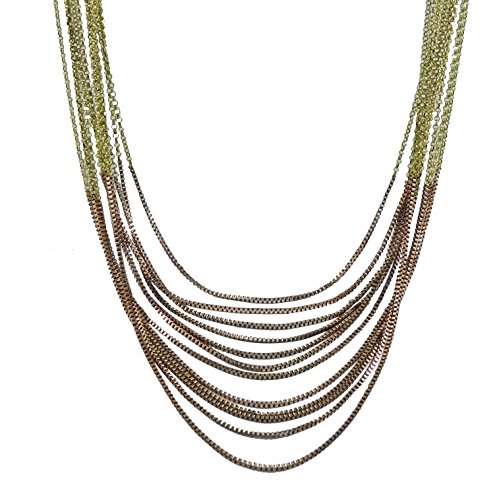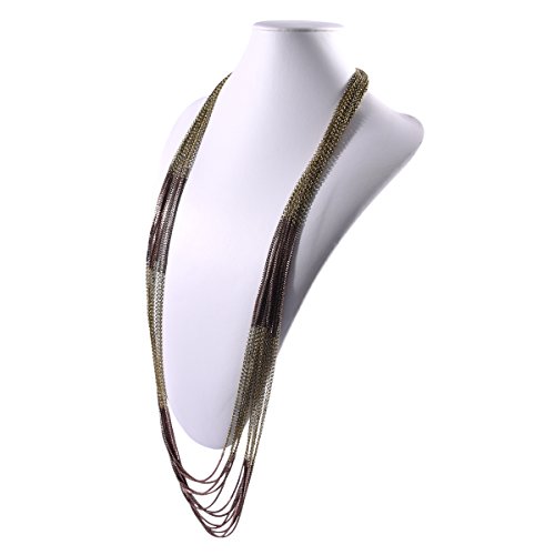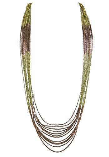 Make a style statement with this multi-strand long chain necklace. Unique shades of copper and green create an eye-catching appeal and add an extra layer of elegance to any ensemble.