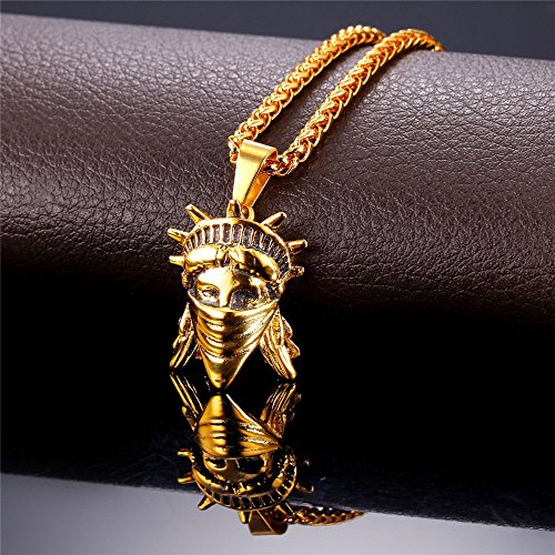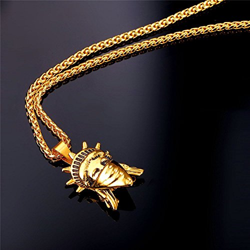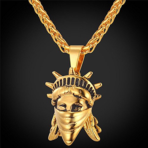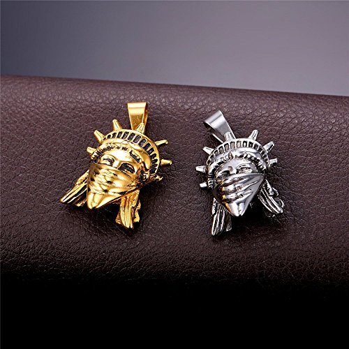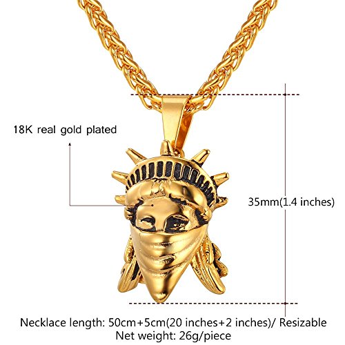 -. Title : U7 American Rebel Statue Of Liberty Pendant Necklace Women Mens 18K Stamp Gold Plated/Stainless Steel Chain Jewelry USA Symbols