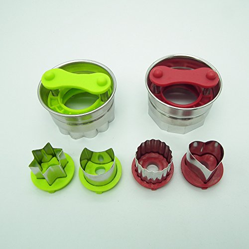 Set includes:2 large cutters: flower and octagon ; 4 small interchangeable cutters: flower, heart, star and moon Packed Safely in the Carton. Size: As picture show ( approx )Large mold: 2.1 x 2.1 x 1.5 in/5.5 x 5.5 x 4 cm; Small mold :1 x 1 x 1.06 in/2.5 x 2.5 x 2.7 cm Please Note: Picture shows only 6 pcs, as you put the small one into the large one, there'll be one more shape, so 4 small ones 4 small ones into large ones=8 piece different shapes. 0