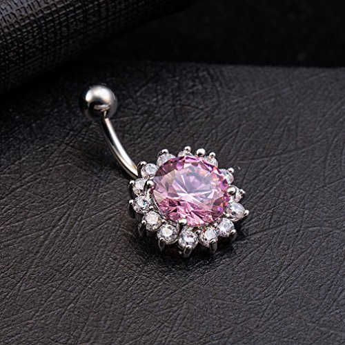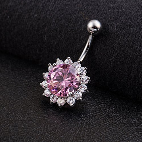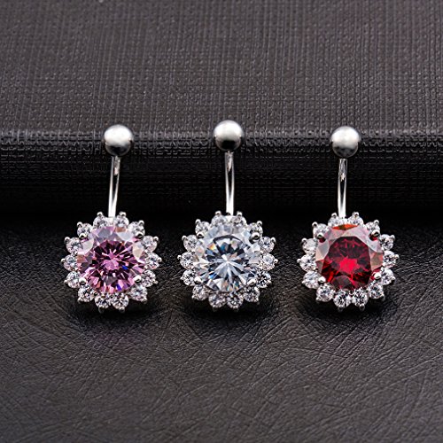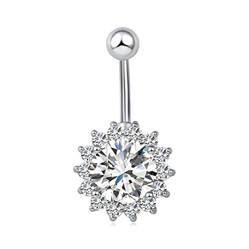 (KIMING)/Accessories/Belts Buckles/DIRECT FROM USA/KIMING Sexy Silver Plated Zircons Flower Dangle Navel Belly Button Rings Body Piercing Jewellery