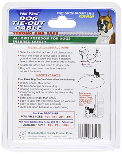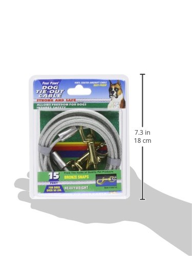 Product Description Four Paws Heavy Weight Dog Tie-Out Cables ? These rust-proof cables are available in 4 lengths and are recommended for dogs over 50 lbs. Available in silver. 0