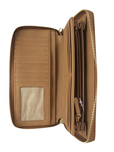 Zip Around Closure; Gold Hardware; Removable Wrist Strap