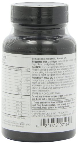 ReleaseDate : 2017-10-04 Studio : Source Naturals Publisher : Source Naturals Binding : Health and Beauty Product Description ArcticPure Krill Oil is a premium, naturally rich source of omega-3s and phospholipids, a potent support for heart and brain health, as well as a means of monthly comfort for women. The omega-3 fatty acids in krill oil include EPA and DHA, renowned for their importance to health. EPA and DHA in krill oil are attached to phospholipids, the primary building blocks of cell membranes. DHA is a primary support of the brain’s neurons and neurological transmitters; EPA influences the chemical mediators that regulate the cardiovascular system. Krill oil additionally contains the natural antioxidants astaxanthin and vitamin A, both of which support protection of cells, eyesight, joint health, and immunity. 0