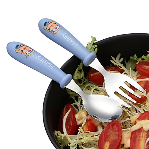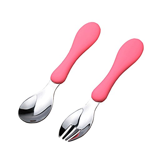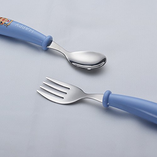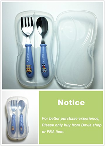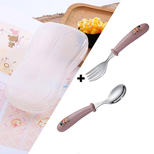 -. Feature : Compact case fits easily into diaper bags and lunchboxes for on-the-go meals / Effective Fork tines, yet no sharp edges / Deep Spoon shape for easy scooping / Curved, non-slip handles are easy for little ones to hold / Weighted handles helps prevent rolling
