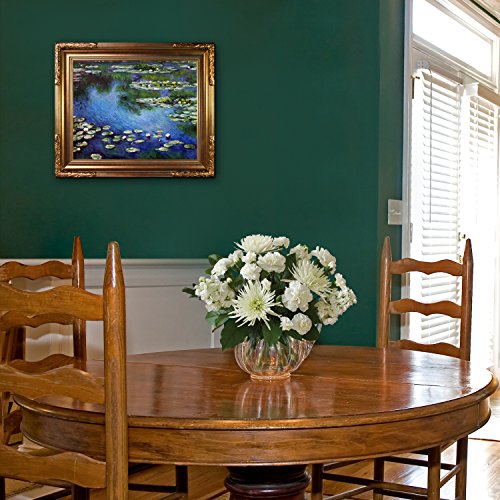 Hand painted oil reproduction of a famous Monet painting, Water Lilies. Today it has been carefully recreated detail-by-detail, color-by-color to near perfection. While Monet successfully captured life's reality in many of his works, his aim was to analyze the ever-changing nature of color and light. Known as the classic Impressionist, one cannot help but have deep admiration for his talent. This work of art has the same emotions and beauty as the original. Why not grace your home with this reproduced masterpiece? It is sure to bring many admirers. Frame Description: Florentine Gold Frame - Gold Finish.Feature