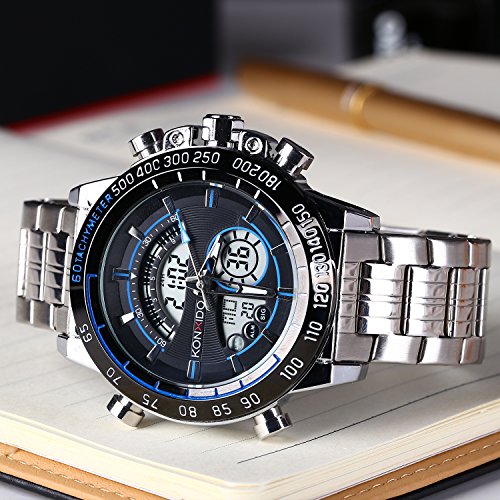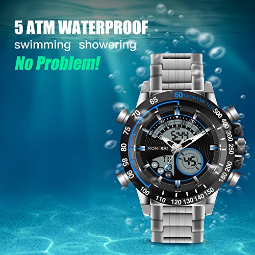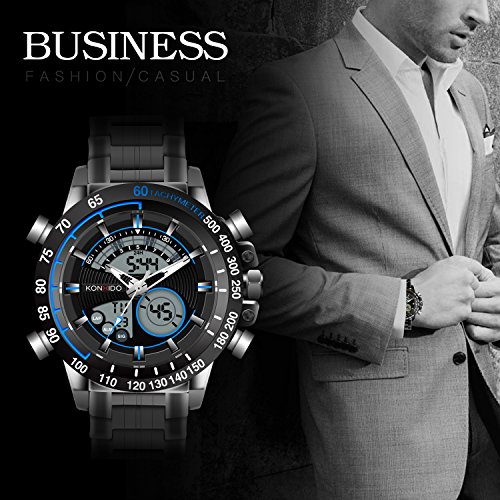 Product Description: Multi-function Design: Analog Digital Dual Display; Military 12/24-hour Format; Displaying Hour, Minute, Second, Month, Day and Week. Calendar ; Stopwatch; Shock Resistant; Alarm Function; 50M Water Proof.