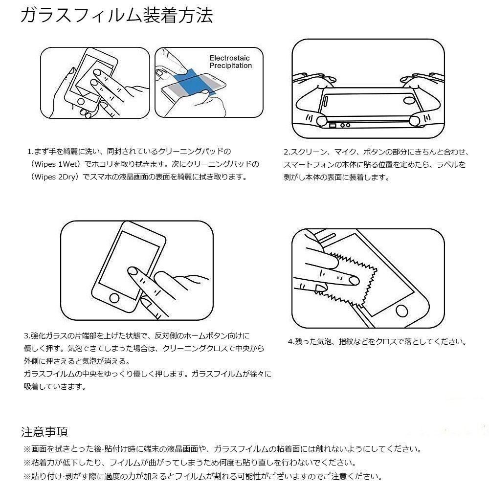 After wiping off the screen · Please do not take it on the liquid crystal screen of the terminal or the adhesive surface of the glass film at the time of pasting.