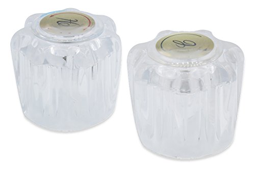 - Plastic construction with a clear finish for a refreshed look, Includes a pair of hot and cold handles, Hot and cold graphic conveniently indicates the temperature mix, Replacement handles for specific brands, Screws included, Fits Delta, Delex and Peerless