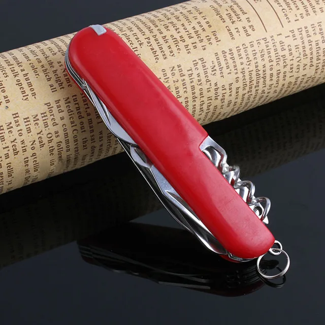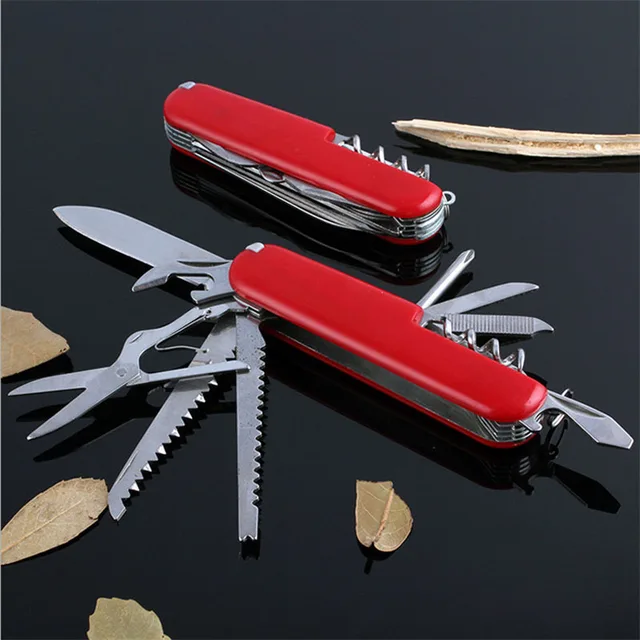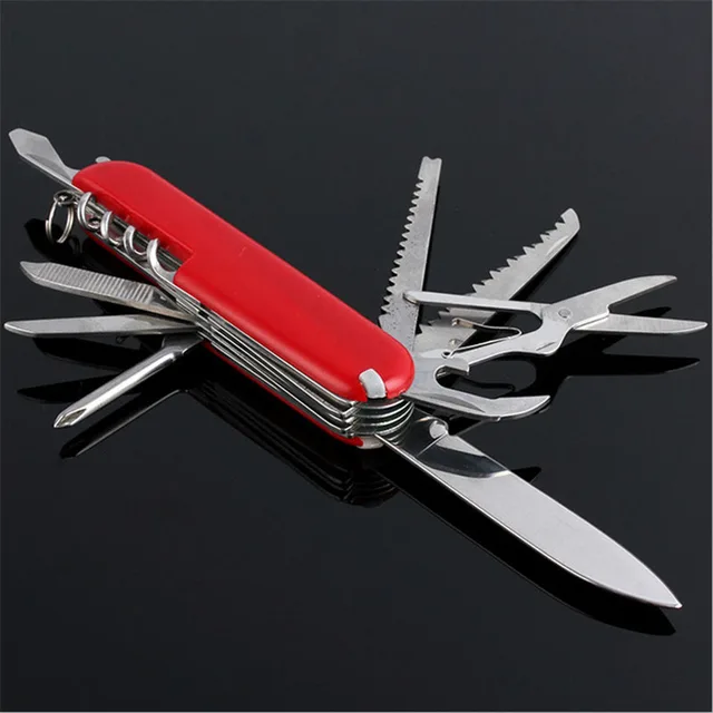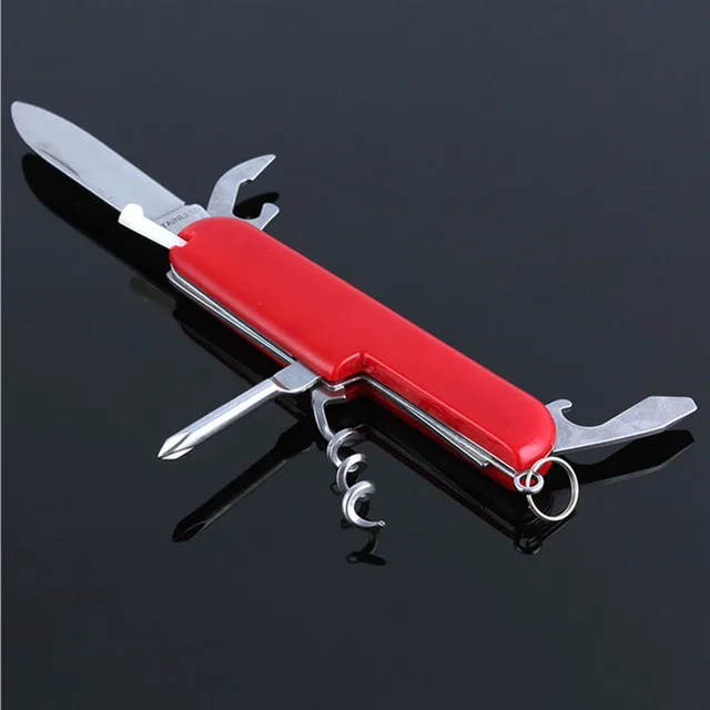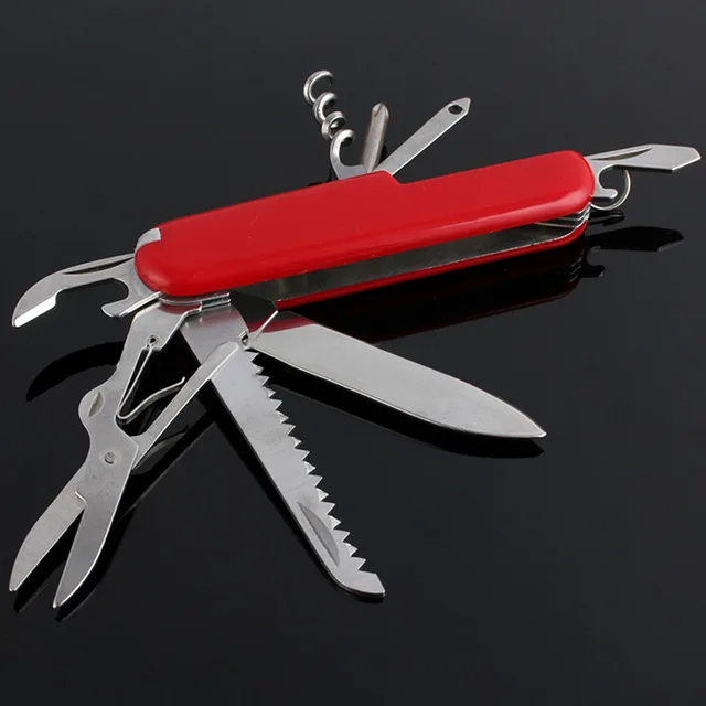 상품명: 접이식 스위스 칼 크기: 15 센치메터 소재: 스틸 색상: 사진 팩: 1 개/상자 블레이드 길이: 9 센치메터 무게: 60/90/130 그램 스타일: 5/9/11 기능 1 판매 방법: 도매 및 소매 품질: 높은 품질 +++ (새로운) 기능: 캠핑 드라이버/칼/병 오프너/절단 /톱/가위 포장 상세