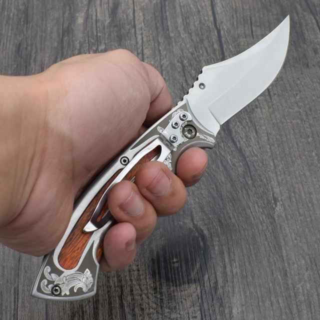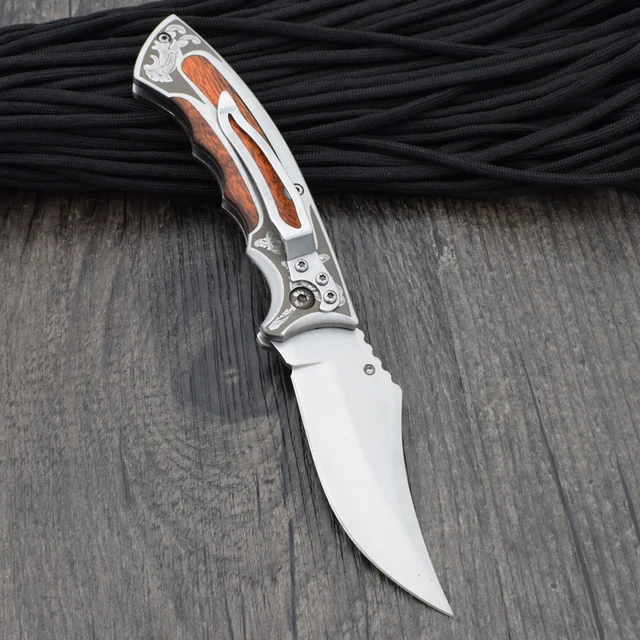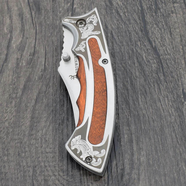 | [해외] 생존 칼 440 스틸 블레이드 나무 핸들 브라우닝 포켓 접는 나이프 사냥 전술 나이프 캠핑 야외 EDC 도구 X10 |
