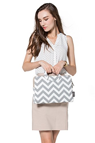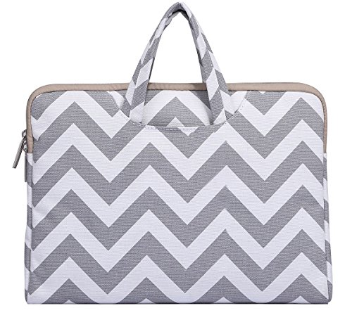 Mosiso Laptop Briefcase, Canvas Fabric Sleeve 14 Inch Laptop / Notebook Computer / MacBook Air / MacBook Pro Carry Case, Chevron Gray