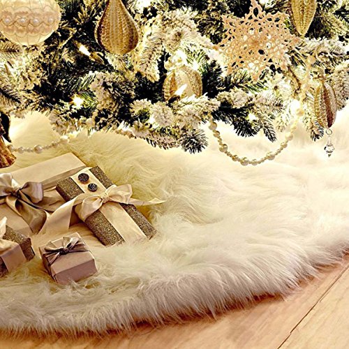 Pure Christmas Tree Skirts - Luxury faux fur Christmas tree skirt, 30.7 inch full size tree skirt in snow white. Add more feast atmosphere to your home, and keep pine debris water and sap that may drip from your tree off floors or carpet.