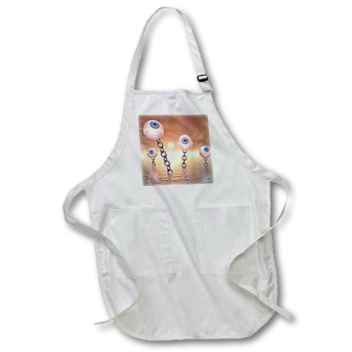 3dRose apr_173469_2 Big Vision and Chains Surreal Series of Eyeballs with Gold Chains Medium Length Apron with Pouch Pockets, 22 by 24-Inch