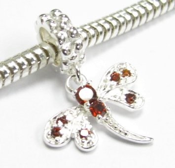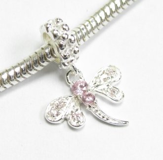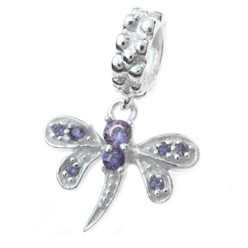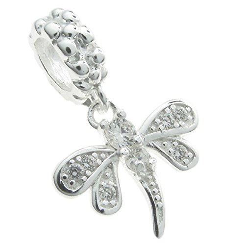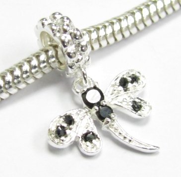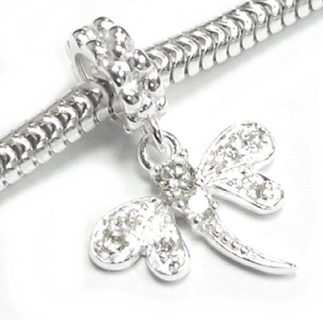 -. Title : Sterling Silver Cubic Zirconia Crystal Dragonfly Dangle European Style Bead Charm