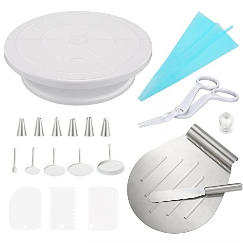 Studio : Hotab Publisher : Hotab Product Description Hotab: We are dedicated to provide the highest quality, the most comfortable and best user experience products. This KIT include: cake turntable, cake smoother scrapers, stainless steel icing spatula, pastry bag and icing tips, cake flower nails, cake flower lifter and cake lifter. This cake decorating KIT is ideal for both beginners and professional users. It comes with a collective of professional decoration tips that will lead cheap and easy life to making an attractive cake.? Material, Include and Size: The pastry bag is made of silicone. The icing spatula and icing smoother are made of stainless steel, and others are plastic. 1pcs Cake Turntable: φ11.02*2.75inch (Diameter * Height) 3pcs Cake Smoother Scraper: 4.72*3.42inch; 4.62*3.22inch; 4.33*2.99inch (L* W) 1pcs Icing Spatula: 10.55inch (L) 1pcs Pastry Bag: 14.56*8.46inch (L*W) 6pcs Cake Icing Tips 1pcs Cake Flower Lifter: 5.31inch (L) 4pcs Cake Flower Nail: φ2.55*2.44inch; φ2.36*2.44inch; φ1.96*2.44inch; φ1.37*2.44inch (D*H) 1pcs Cake Lifter: 10.7 * 10.55inch (L*W) Best choice for all of you guys. Price?differences?are?used?as?a?proxy?for?differences?in?quality.