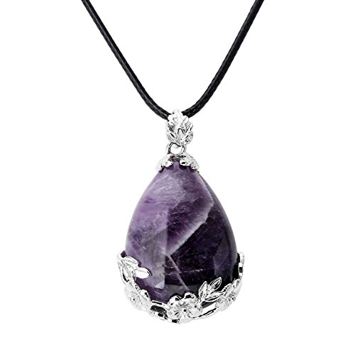 Top Plaza 1x Natural Amethyst Waterdrop Dangle Bead Pendant for Necklace, Purple Crystal Pendant