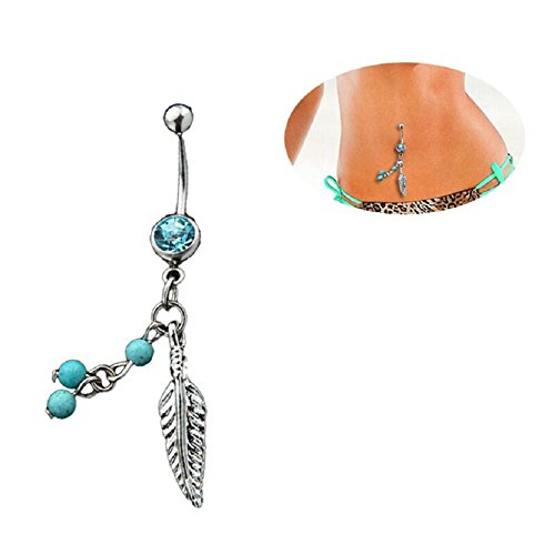 -. Title : coromose® Crystal Ball Leaf Dangle Navel Belly Button Barbell Ring Body Piercing