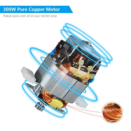 The 300W pure copper motor throws impressive speed into the mix, and without making a fuss ¨C it's whisper quiet. The thickened glass work bowl is dishwasher safe,shock resistant and won't develop cracks after repeated use ¨C even if you're putting frozen vegetables into the mix.