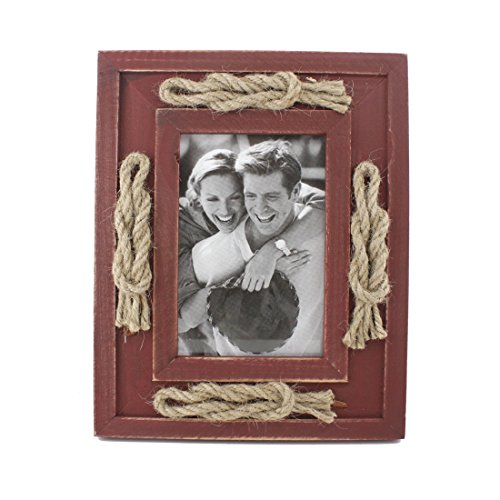 -. Title : 3.5x5 Inch Retro Wood Family Picture Frame with Rope Decoration,for Tabletop Display with Glass Front