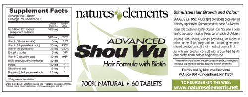 -. Binding : Health and Beauty -. Brand : Natures Elements -. EAN : 0852865006013 -. Feature : The Most Powerful Form of Shou Wu Available, 12:1 Extract Plus 10 Hair Nourishing Herbs & Vitamins! / Advanced Shou Wu has Bioperine which can increase the absorption of Shou Wu or Fo ti / More Hair - Less Gray - For Men & Women - Vegetarian Safe - Gluten Free - Made In USA / Small Easy to Swallow Tablets Packed With B Vitamins, He Shou Wu & More / Prepared By Steaming With Chinese Black Beans - 12 Times More Potent Than Ordinary Powder! -. IsAdultProduct : 0 -. Label : Natures Elements -. Manufacturer : Natures Elements -. ProductGroup : Health and Beauty -. ProductTypeName : HEALTH_PERSONAL_CARE -. Publisher : Natures Elements -. Studio : Natures Elements -. Title : Advanced Shou Wu for Gray Hair - Chinese Herb Stimulates Hair Growth - Most Powerful Shou Wu Available - 700mg Tablets - All the Benefits of Original He Shou Wu Plus 10 More Hair Nourishing Vitamins and Herbs -. UPC : 852865006013