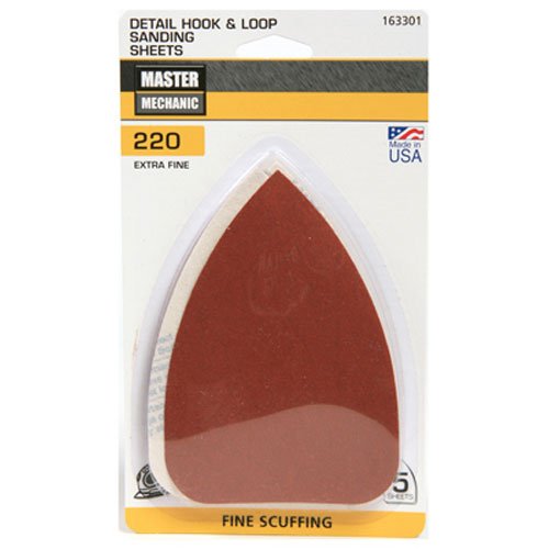 - The product is Master Mechanic, 5 Pack, 220 Grit, Extra Fine, Mouse Hook & Loop Refill Sanding Sheet.