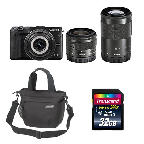 Canon mirror-less SLR EOS M3 creative macro triple lens kit black + ETSUMI & Coleman camera bag 3.5L black and one other piece set